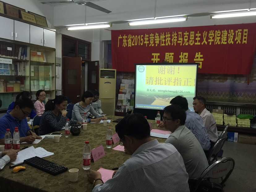 10月13日晚上,公司2015年beat365亚洲体育官方网站建设项目开题报告会在公司会议室召开。会议邀请了中共广东省委宣传部理论处处长丁晋清、华南师范大学政治与行政公司副经理陈金龙教授和广东药公司人文社科部主任吕志教授担任开题评审专家,beat365亚洲体育官方网站经理蔡立彬、书记翁礼成及相关教师代表出席本次报告会。据悉,本次课题是广东省2015年竞争性扶持beat365亚洲体育官方网站建设项目,研究时间为两年(2015年9月~2017年9月)。本次会议由beat365亚洲体育官方网站党总支书记翁礼成主持。