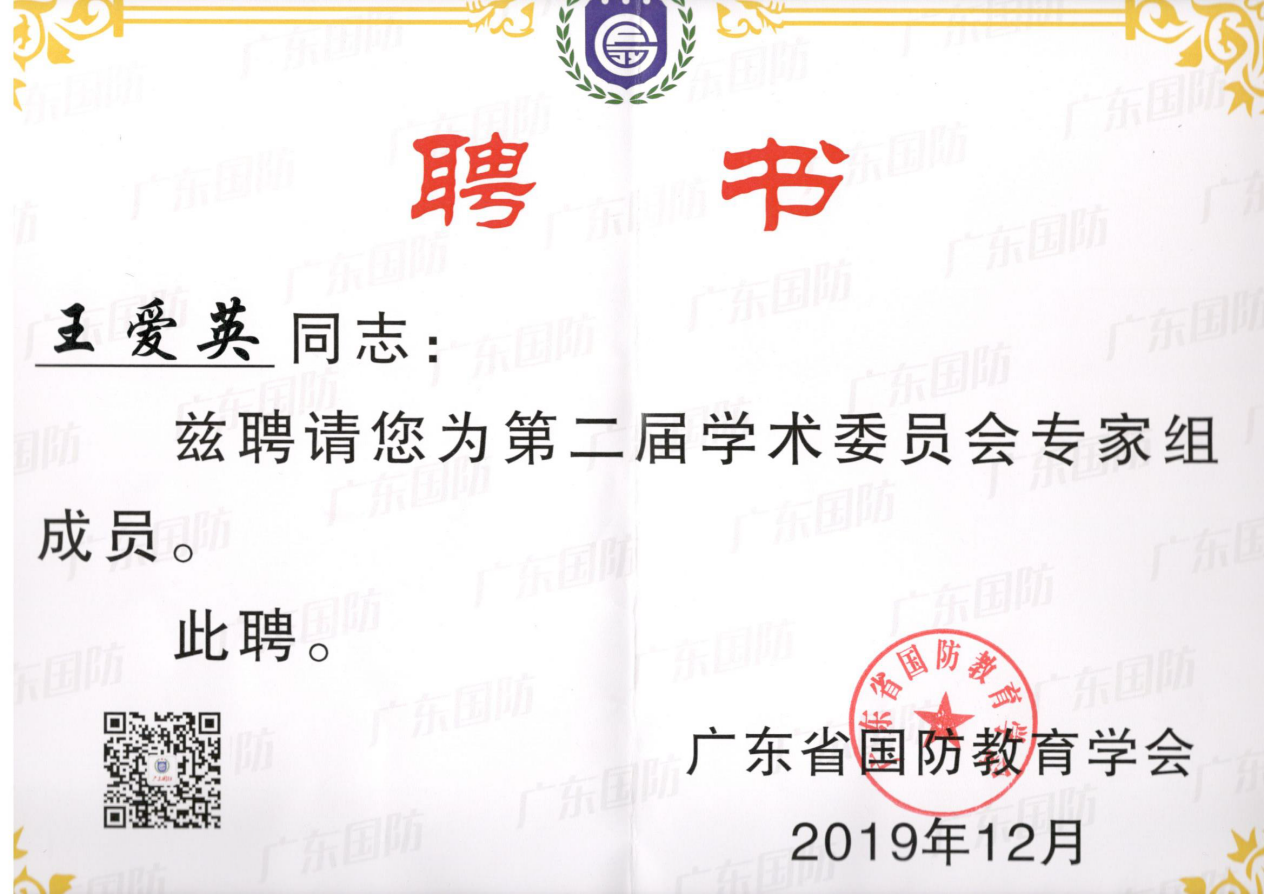 会上,广东省国防教育学会通报了2018~2019年度的国防教育情况,并对全省43个先进单位和61名先进个人进行表彰。经广东省国防教育学会评定,公司beat365亚洲体育官方网站军事理论教研室李伟超老师获评2018~2019年度广东省国防教育工作先进个人;公司beat365亚洲体育官方网站王爱英副教授被广东省国防教育学会评为第二届学术委员会专家组成员。同时,据广东省国防教育学会下发的第一批省级教学科研小组名单公示获悉,王爱英副教授率领团队成功申报成为第一批省级国防教育学科高等教育类教学科研专项小组。