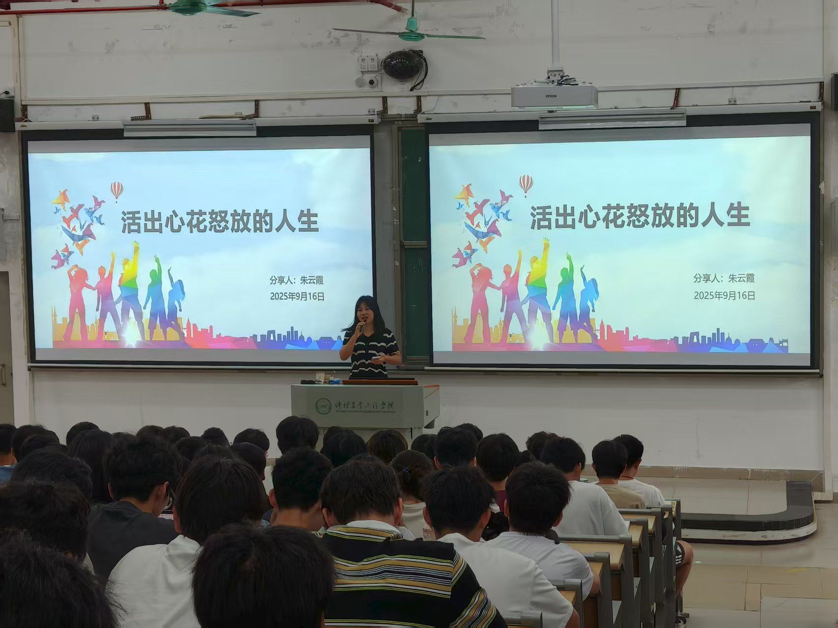 在课程中,广州市番禺杰出外来工、广州市劳动模范(历史最年轻劳模)、广州独角兽网络科技有限公司联合创始人朱云霞女士以“活出心花怒放的人生”为题,从“个人简介”“公司经验”“工作经验”“生活经验”等四个方面深情讲述了自己从日企最年轻管理者到上市游戏公司总监及子公司副总经理的奋斗历程和创业史,并在现场就同学们关心的职业选择与专业准备等话题进行了详细的答疑解惑,用实际行动诠释了“时代楷模铸就绚烂青春”的价值与力量。