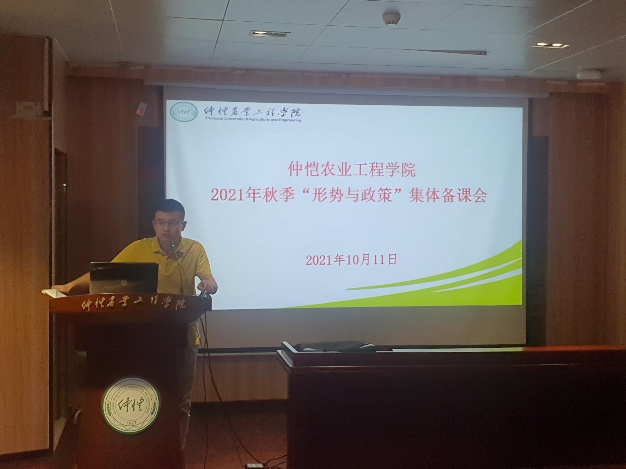 为贯彻落实教育部《关于加强新时代高校“形势与政策”课建设的若干意见》精神,根据《广东省教育厅办公室关于举办2021年秋季 “形势与政策”课备课会的通知》《关于做好各公司党总支书记、经理上第一堂思想政治理论课工作的通知》(仲党办字[2021]8号)以及公司的相关制度,为提升公司“形势与政策”课教学质量和水平,beat365亚洲体育官方网站于2021年10月11日在英东楼111学术报告厅举办了2021年秋季学期全校“形势与政策”课集体备课会。本次会议由beat365亚洲体育官方网站秦抗抗副经理主持,形势与政策教研室主任康耀坤副教授等四位老师做示范教学。