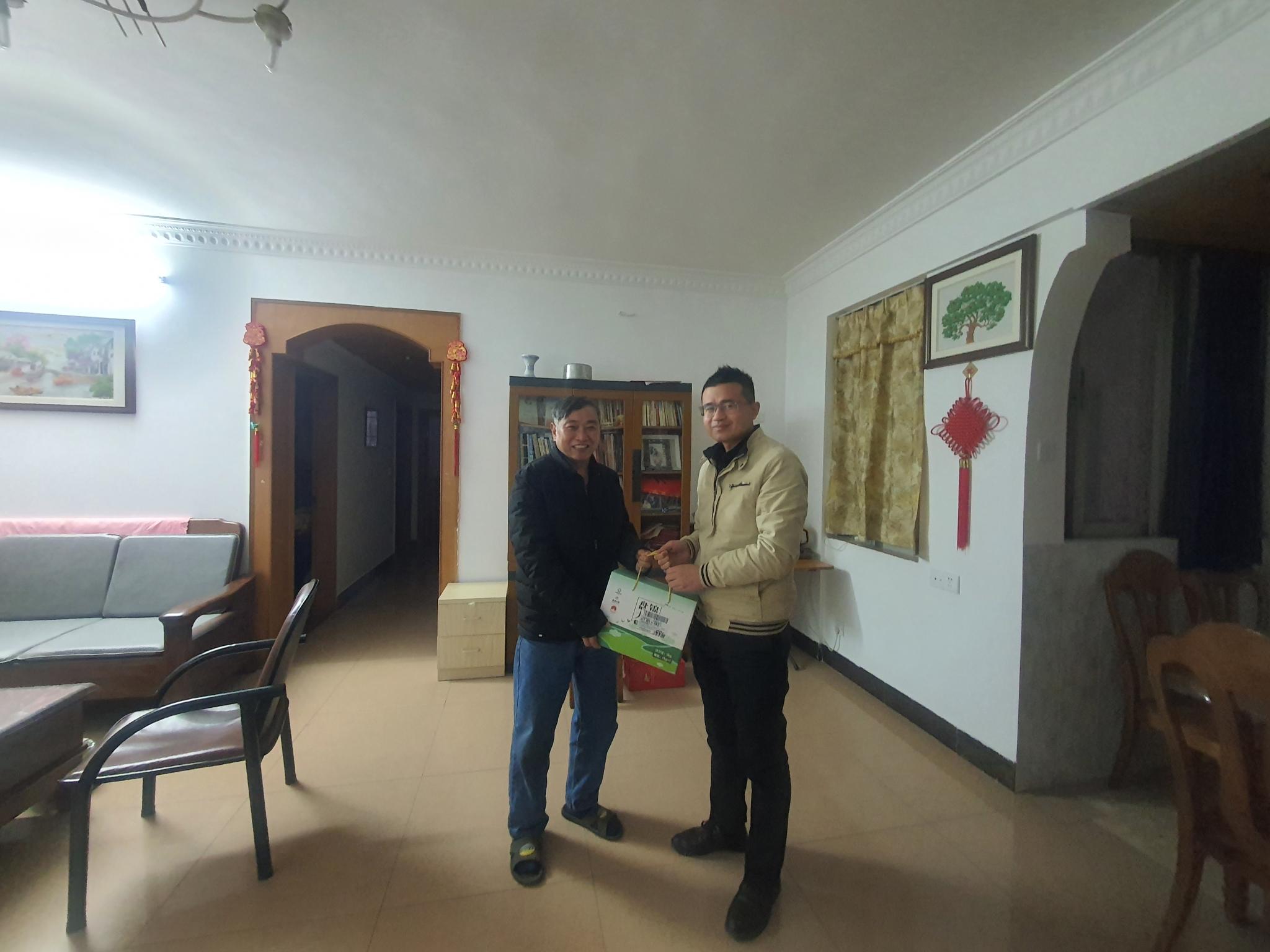 在新春佳节临近之际,2022年1月14日,beat365亚洲体育官方网站领导班子成员蔡立彬、秦抗抗,部门工会委员杜冬阳以及教师代表一行4人,先后上门拜访、慰问杜宋来夫妇、曾学龙、肖巧云、梁玉梅、韦俊宗等六位退休老同志,为他们送上最诚挚的关怀和新年的祝福,同时送去慰问品和困难党员慰问金。