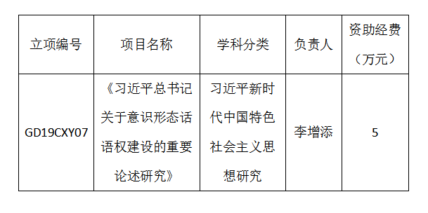 经广东省哲学社会科学规划领导小组审批同意,公司beat365亚洲体育官方网站李增添老师主持申报的《习近平总书记关于意识形态话语权建设的重要论述研究》获得广东省哲学社会科学“十三五”规划2019年度一般项目立项,获资助经费5万元。