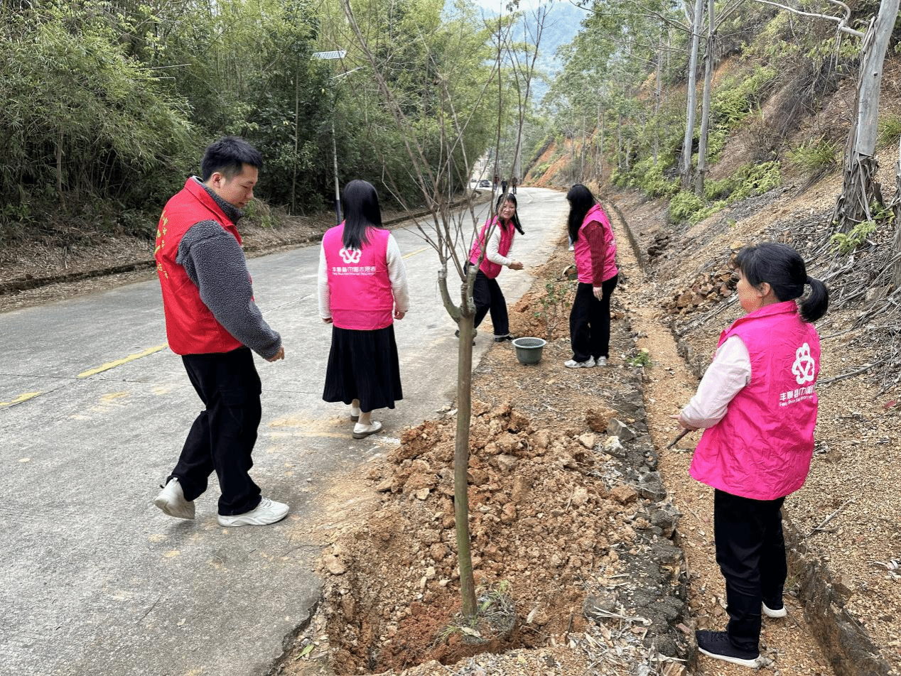 当日,春风和煦,暖阳当空。在植树现场,党员干部与群众分工协作,挥锹挖坑、扶苗培土、浇水定根,合力栽下百余株黄花风铃和红火箭紫薇树苗,为华东村增添了一抹新绿和一片盎然生机。