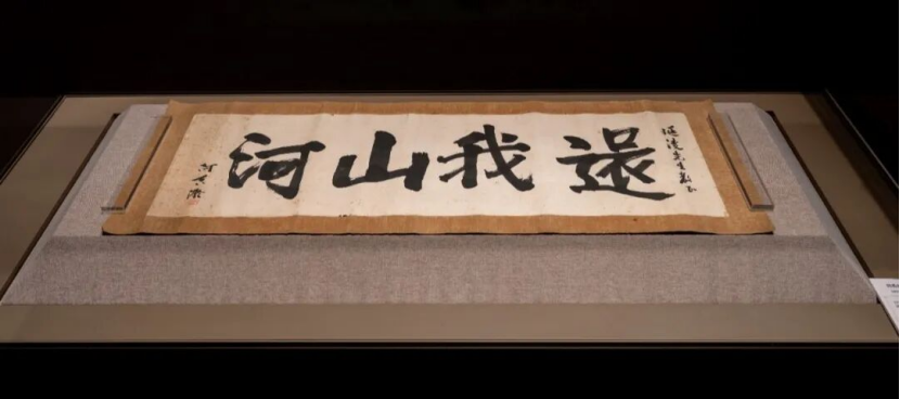 展览现场,展出公司首任董事长何香凝先生书“还我山河”行楷横幅,“抗战必胜”铜印盒,陈铭枢撰、李济深书《十九路军淞沪殉国并历年死难将士公墓纪念碑文》拓片,陈铭枢撰、刘纪文书《十九路军淞沪抗日阵亡将士纪念碑》拓片等文物,记载着一段段抗日救亡故事。