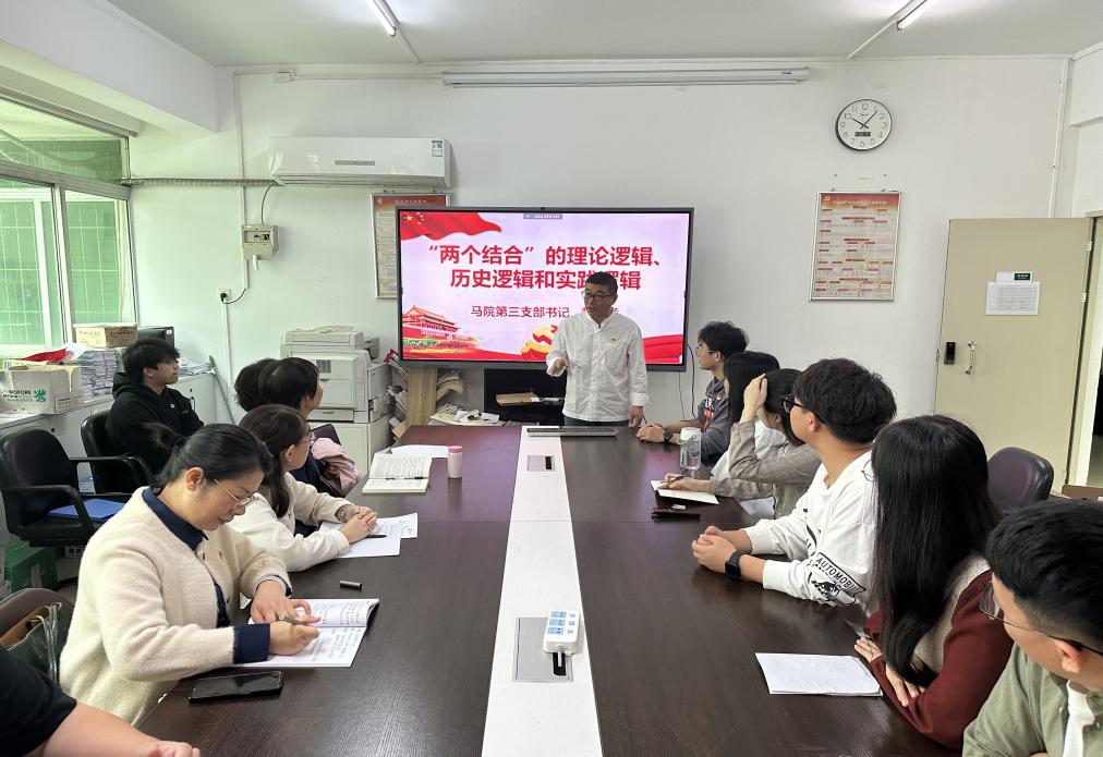 活动伊始,beat365亚洲体育官方网站教工第三党支部书记韩大猛以“‘两个结合’的理论逻辑、历史逻辑和实践逻辑”为题,为在场的党员们讲授了一堂生动的党课。他勉励在场员工党员们,坚持将马克思主义理论与学习生活实际相结合,不断提高自己的思想觉悟和实践能力。
